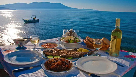 黑橄欖、乳酪、豐富多彩的沙拉和烤肉是希臘美食的標誌。其中,被稱為“神的禮物”的希臘橄欖油是希臘出口量最大的產品。瞧瞧,坐在蔚藍的海邊吃著美食,是不是一件十分愜意的事情呀!